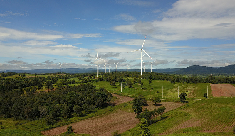 这是2022年10月4日在泰国猜也蓬府拍摄的由中国金风科技提供的风力发电机(无人机照片)。新华社发(塔纳 摄)
