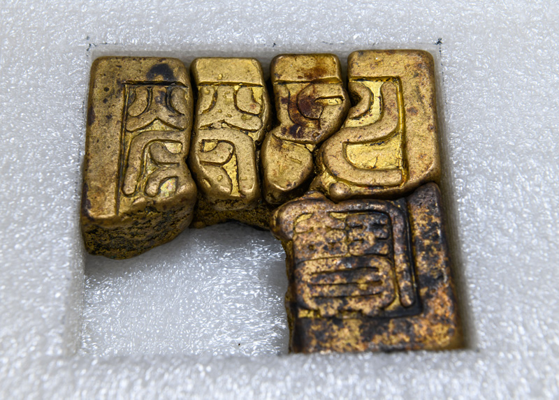 这是“钦赐崇德书院”鎏金铜印(2022年4月25日摄)。新华社记者 王曦 摄