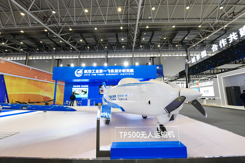 11月16日拍摄的第十届中国(绵阳)科技城国际科技博览会展出的TP500无人运输机。新华社记者 唐文豪 摄