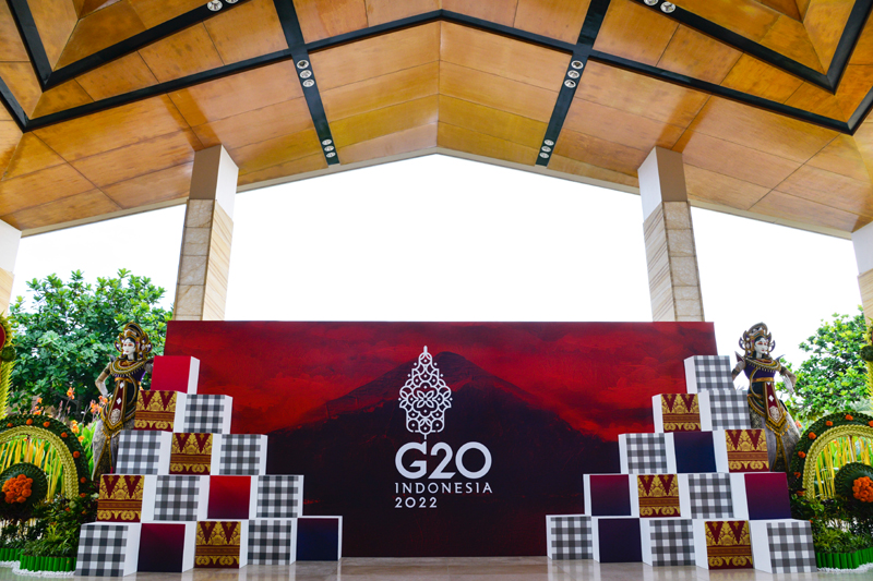 这是2022年11月11日在印度尼西亚巴厘岛拍摄的峰会一处会场外的峰会标识和装饰。新华社记者 徐钦 摄