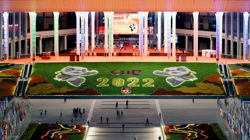这是2022年11月5日拍摄的第五届中国国际进口博览会举办地国家会展中心(上海)夜景。新华社记者 刘颖 摄