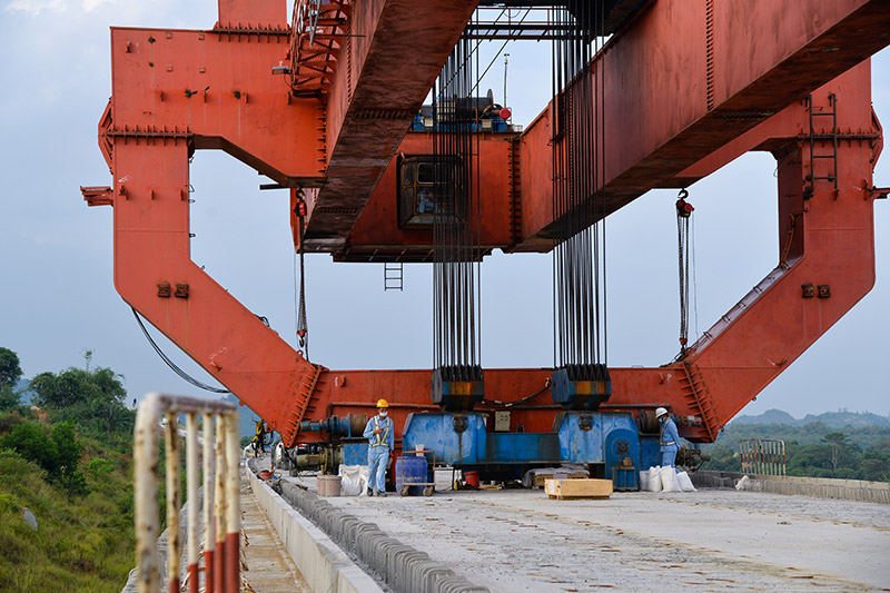 新华社雅加达10月16日电(记者 余谦梁、汪奥娜)16日,随着最后一榀重达900吨的简支梁稳稳落在雅万高铁24号桥8号至9号桥墩上,印度尼西亚雅万高铁全线箱梁架设任务顺利完成,铺轨通道全面打通,为2023年6月建成通车奠定了坚实基础。