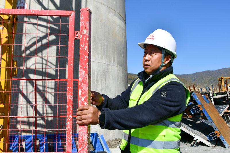 10月11日,中铁十五局集团五公司沈白高铁项目党支部书记杜海波在工作中。新华社发(张臻月 摄)