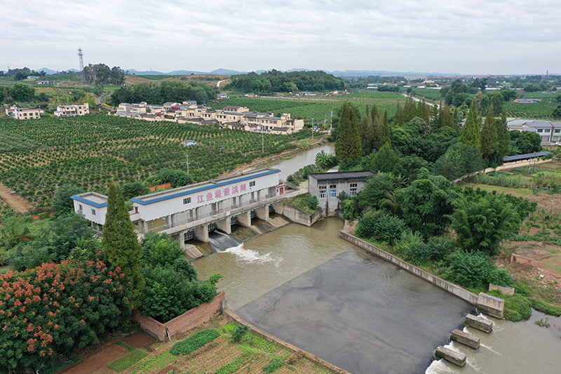 10月6日拍摄的位于四川省眉山市彭山区境内的通济堰灌区江鱼堤泄洪闸(无人机照片)。新华社发(姚永亮 摄)