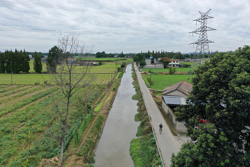 10月6日拍摄的位于四川省眉山市东坡区境内的通济堰灌区(无人机照片)。新华社发(姚永亮 摄)