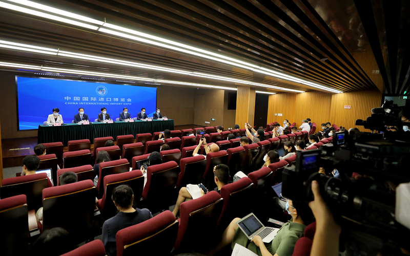 第五届中国国际进口博览会开幕倒计时100天新闻通气会在上海市政府新闻发布厅举行(2022年7月27日摄)。新华社记者 方喆 摄