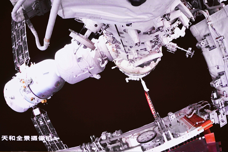 9月30日在北京航天飞行控制中心拍摄的问天实验舱转位画面。这是问天实验舱采用平面转位方式完成转位并与节点舱侧向端口再对接。新华社记者 郭中正 摄