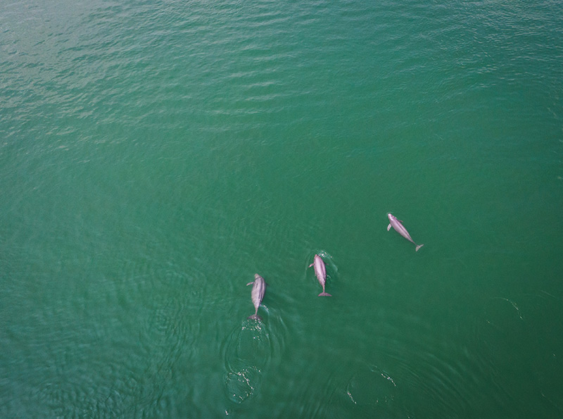 “快看,好大一家子江豚!”