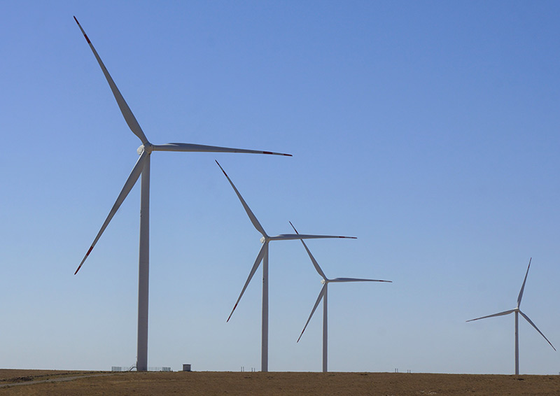 这是2022年9月13日拍摄的哈萨克斯坦札纳塔斯风电场风机。新华社发(德米特里·瓦西连科 摄)