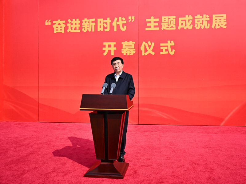 9月27日上午,“奋进新时代”主题成就展开幕式在北京展览馆举行。中共中央政治局常委、中央书记处书记王沪宁发表讲话并宣布展览开幕。新华社记者 燕雁 摄