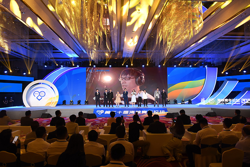 台湾青年在第二十届海峡青年论坛上演唱歌曲(2022年7月12日摄)。新华社记者 林善传 摄