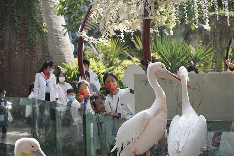 两岸“和平小天使”在厦门灵玲动物王国参观(2021年12月4日摄)。新华社发