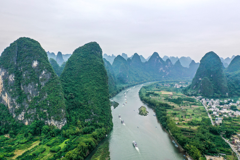 桂林山水也曾面临非法采石采砂等带来的生态危机。近年来,桂林市大力治理漓江,生态环境得到改善。