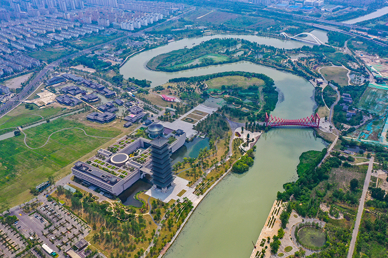 这是江苏省扬州市运河三湾景区(2022年5月25日摄,无人机照片)。新华社记者 李博 摄