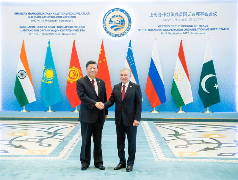 新华社乌兹别克斯坦撒马尔罕9月16日电(记者 范伟国 刘华)当地时间9月16日,国家主席习近平在撒马尔罕国际会议中心出席上海合作组织成员国元首理事会第二十二次会议小范围会谈。