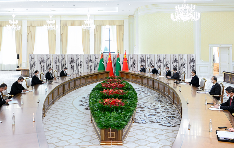 习近平强调,双方要做大两国天然气合作的体量和规模,为两国发展振兴注入新动力。要加快推进非资源领域合作,推进共建“一带一路”倡议同土方“复兴丝绸之路”战略对接。尽早落实互设文化中心,为两国人文交流搭建新平台。中方愿早日在土库曼斯坦设立鲁班工坊,同土方继续加强抗疫合作。中方愿同土方加强“中国+中亚五国”会晤机制内合作,落实全球发展倡议和全球安全倡议,密切国际协作,维护广大发展中国家共同利益,为促进世界和平与发展作出贡献。