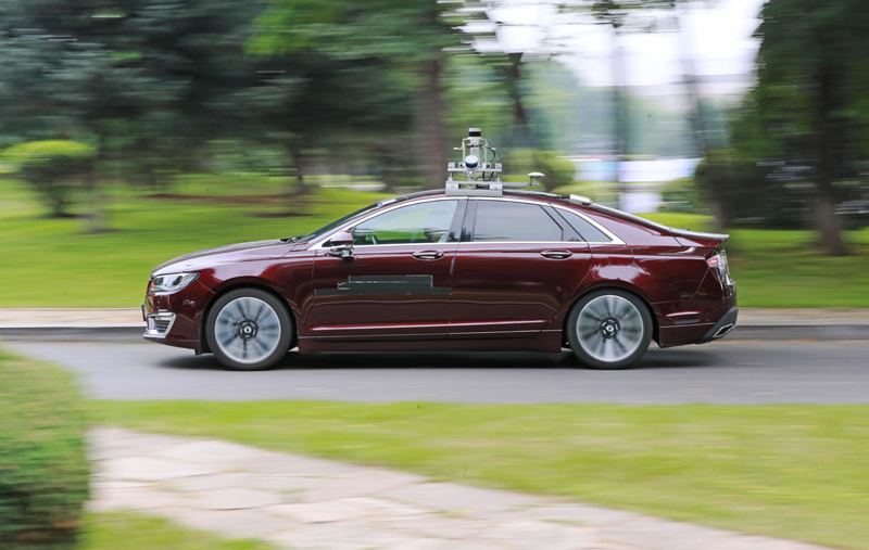 2021年7月9日,在沈阳市浑南区东软软件园,自动驾驶汽车在封闭道路上进行行驶测试。新华社记者 杨青 摄