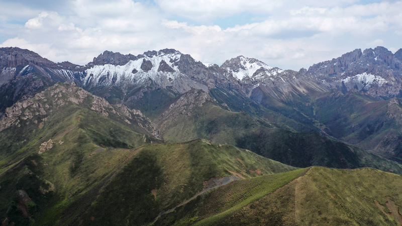 甘肃省武威市天祝藏族自治县石门沟景色(2022年6月5日摄,无人机照片)。这里地处祁连山生态系统中重要水源涵养和补给区。新华社记者 陈斌 摄