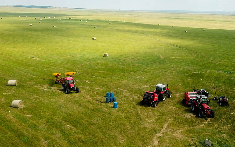 2022年7月25日,打草机在呼伦贝尔草原上打草(无人机照片)。新华社记者 彭源 摄