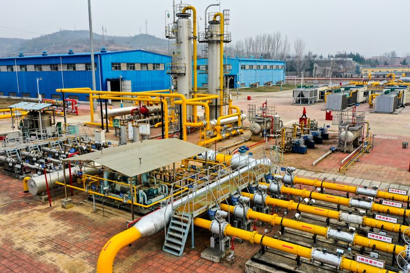 这是2020年12月8日拍摄的位于山西省晋城市沁水县的山西蓝焰煤层气集团有限责任公司李庄首站(无人机照片)。新华社记者 曹阳 摄