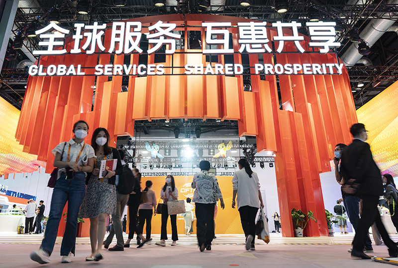 观众在国家会议中心参观2022年中国国际服务贸易交易会中国服务贸易成就展专区(2022年9月1日摄)。新华社记者 才扬 摄