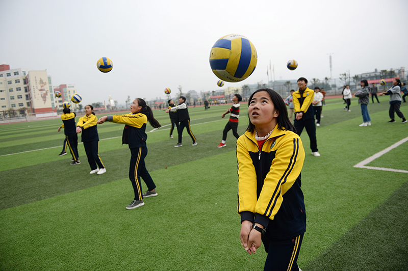 贵州省黔东南苗族侗族自治州榕江县第四中学学生在上体育课(2018年12月13日摄)。新华社记者 杨楹 摄