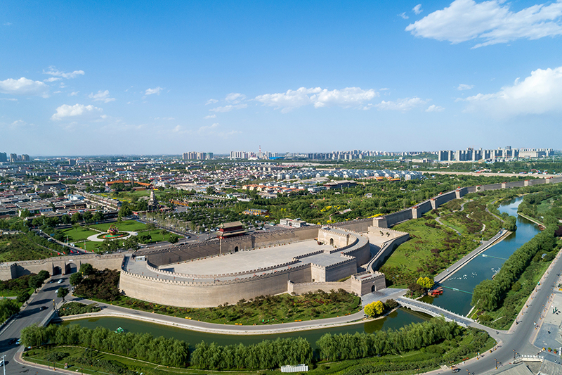 蓝天白云掩映下的河北省正定古城(2021年6月4日摄,无人机照片)。新华社记者 朱旭东 摄