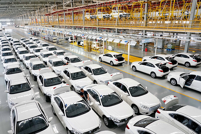 工人在位于河北省黄骅市的北京新能源汽车股份有限公司黄骅分公司生产车间工作(2019年7月6日摄)。新华社记者 杨世尧 摄