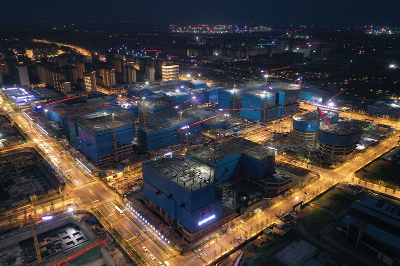 雄安新区容东片区雄安·电建智汇城建设项目夜景(2022年8月17日摄,无人机照片)。新华社记者 朱旭东 摄