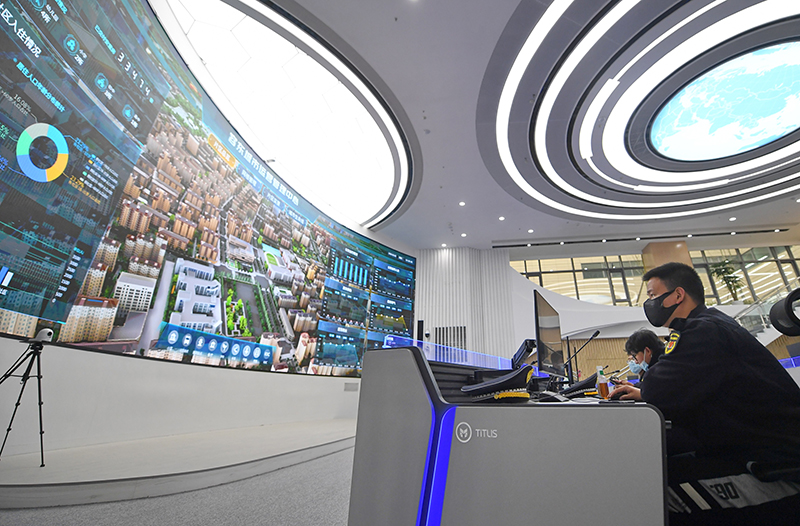 工作人员在雄安新区容东城市运营管理中心监管平台工作(2022年3月29日摄)。新华社记者 朱旭东 摄