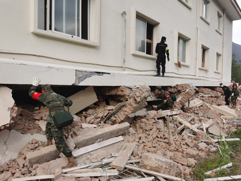 武警四川总队迅速派出前进指挥组指挥一线部队行动。武警甘孜支队30名官兵携带铁锹、药品奔赴震中泸定县得妥乡,开展情况勘察、道路清理和转移群众等工作。武警四川总队机动第二支队派出95名官兵和15台挖掘机、装载机等抢险救援车辆,携带生命探测仪、破拆工具等专业装备紧急赶往震中。武警四川总队医院出动应急医疗队和救护车、手术方舱车、防疫洗消车等医疗装备,携带医疗物资前往泸定县,开展紧急救护、后送治疗等工作。截至16时,1000余名武警官兵紧急出动,投入抢险救援一线。
