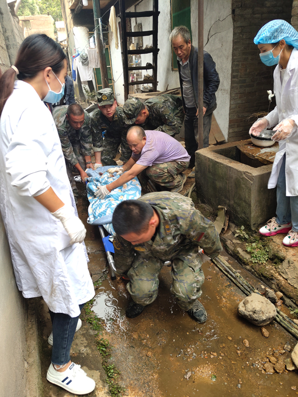 9月5日,武警四川总队雅安支队执勤四中队官兵在雅安市石棉县王岗坪彝族藏族乡挖角村救助被困群众(手机照片)。新华社发(何虹岑 摄)