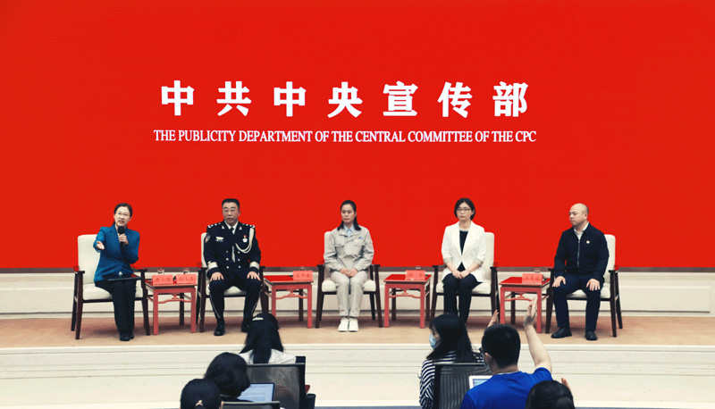 2021年7月22日,中宣部举行“传递榜样力量 争取新的光荣”中外记者见面会。四位“两优一先”代表在会上分享了他们爱党为民、担当奉献的感人故事。新华社记者 潘旭 摄
