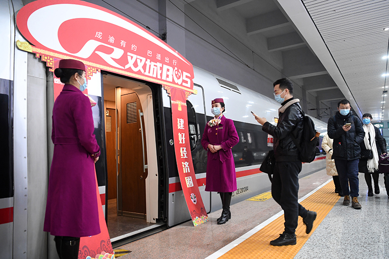 乘客准备登上由重庆沙坪坝站开往成都东站的G8608次“复兴号”高铁列车(2020年12月24日摄)。新华社记者 唐奕 摄