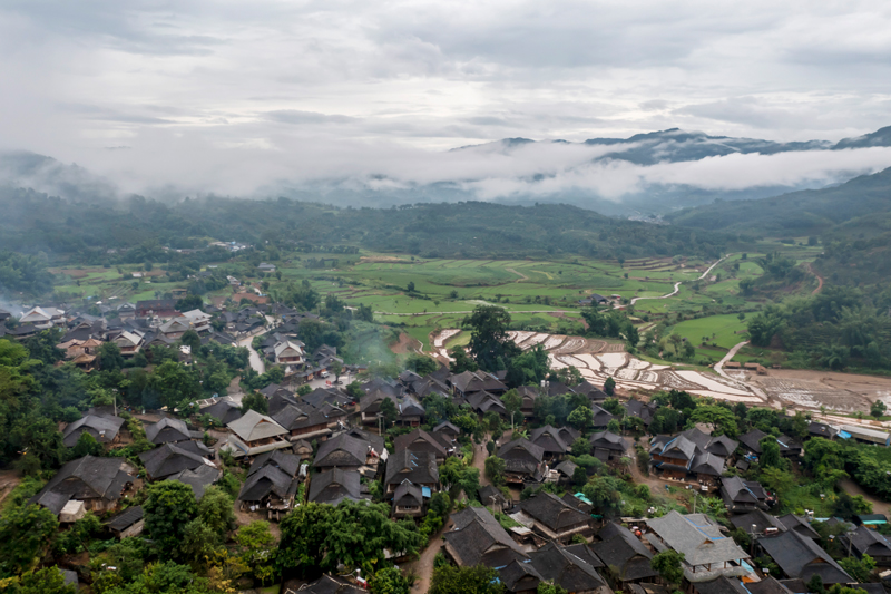 云南省普洱市澜沧拉祜族自治县老达保村夏日景色(2022年7月5日摄,无人机照片)。新华社记者 江文耀 摄