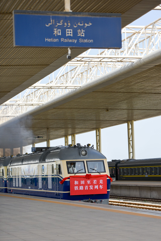 今年6月,随着和田至若羌铁路开通运营,世界首条环沙漠铁路线打通了“最后一公里”,散落在塔克拉玛干沙漠周围的绿洲,被铁路串联起来,沿线棉花、核桃、红枣、矿产等都可通过铁路直通疆内外,对促进民族团结和加快沿线经济社会发展具有重要意义。