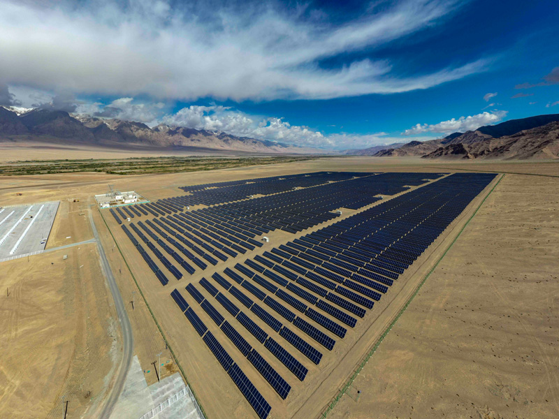这是深圳援建的新疆塔什库尔干塔吉克自治县2万千瓦太阳能光伏扶贫电站(无人机照片,2020年6月15日摄)。新华社记者 胡虎虎 摄