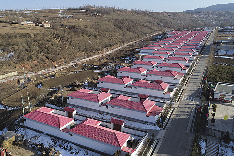 2021年2月6日在甘肃省定西市渭源县元古堆村拍摄的乡村道路和易地扶贫搬迁点。新华社记者 马希平 摄