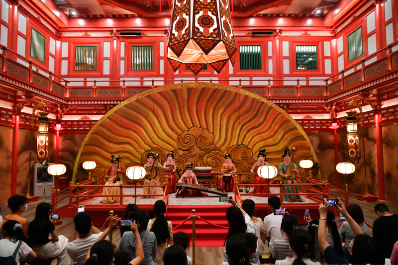 2022年7月16日,演员在西安曲江新区内的长安十二时辰主题街区表演。新华社记者 张博文 摄