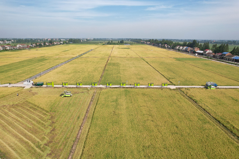 这是湖南省沅江市草尾镇中联智慧农业沅江基地的机械化收割现场(2022年7月14日摄)。新华社发(钟祖彪 摄)