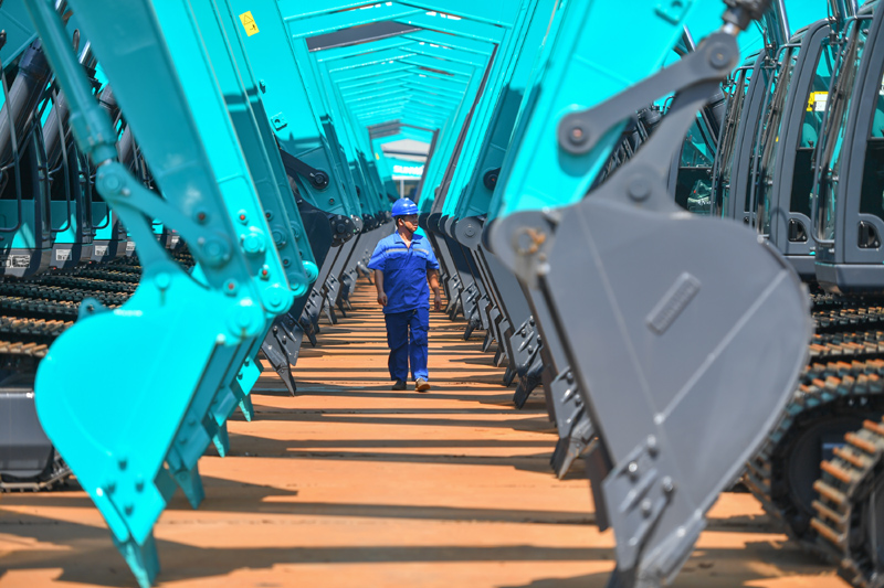在位于湖南长沙经开区的山河智能装备股份有限公司,工作人员在检查机械装备(2022年7月1日摄)。新华社记者 陈泽国 摄