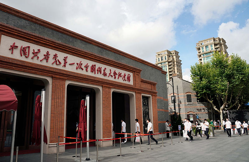 人们走进中共一大纪念馆参观(2022年7月1日摄)。新华社记者 刘颖 摄