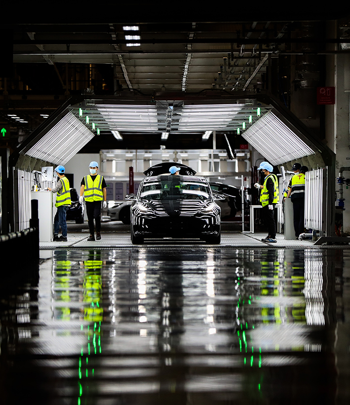 工作人员在特斯拉上海超级工厂内作业(2020年11月20日摄)。新华社记者 丁汀 摄