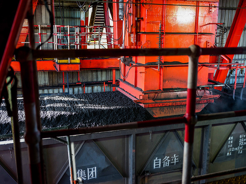 在内蒙古鄂尔多斯市国能神东煤炭洗选中心,煤炭被洗选装车(2021年12月16日摄)。新华社记者 连振 摄