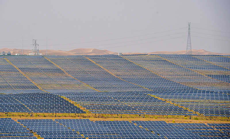 这是位于内蒙古库布其沙漠中的光伏发电基地(2020年9月14日摄)。新华社记者 连振 摄