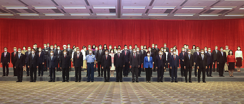 7月1日上午,国家主席习近平在香港特别行政区行政长官李家超的陪同下,会见香港特别行政区新任行政、立法、司法机关负责人。新华社记者 鞠鹏 摄