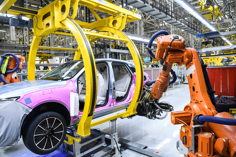 这是2022年6月27日拍摄的位于重庆的赛力斯汽车有限公司两江智慧工厂车间。新华社记者 王全超 摄