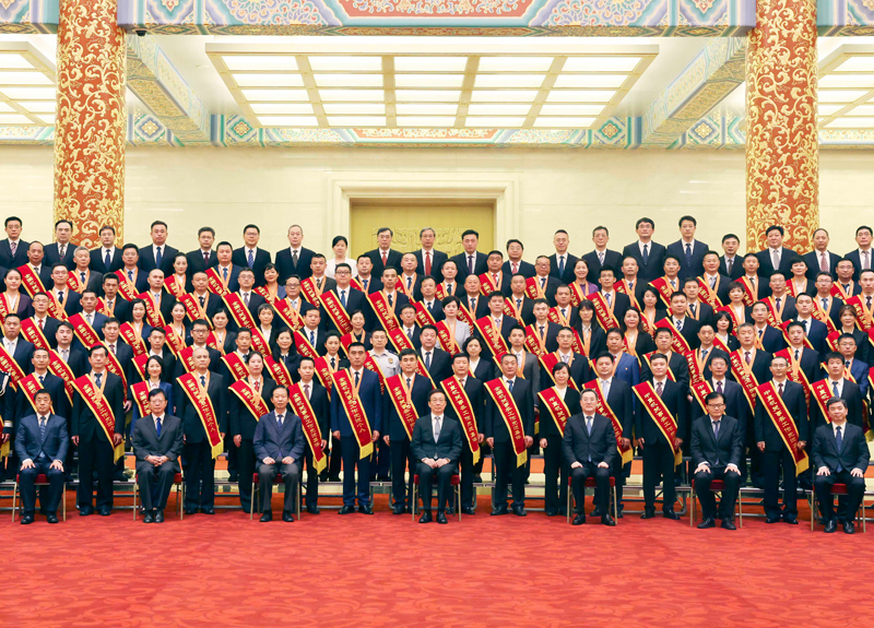 6月27日,全国机关事务工作先进集体和先进个人表彰大会在北京人民大会堂举行。中共中央政治局常委、国务院副总理韩正会见受表彰人员和参会代表并合影。新华社记者 刘卫兵 摄