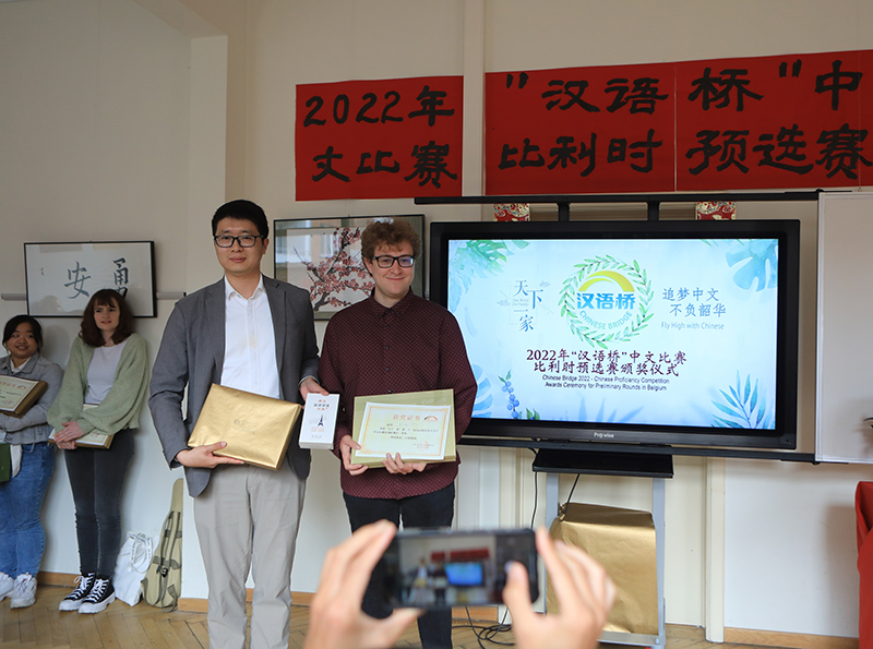 新华社布鲁塞尔6月26日电(记者 潘革平)第21届“汉语桥”世界大学生中文比赛和第15届“汉语桥”世界中学生中文比赛比利时预赛26日在布鲁塞尔孔子学院举行。经过激烈角逐,来自蒙斯大学翻译学院的马蒂亚斯·皮尔和列日孔子学院的塞费里亚季斯·玛丽分别获得大学生组和中学生组第一名,将代表比利时参加“汉语桥”全球总决赛。