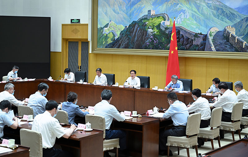 6月24日,中共中央政治局常委、国务院副总理、推进海南全面深化改革开放领导小组组长韩正在北京主持召开推进海南全面深化改革开放领导小组专题会议,认真学习贯彻习近平总书记关于海南自由贸易港建设的重要讲话精神,审议有关政策文件,研究部署下一步重点工作。新华社记者 张领 摄